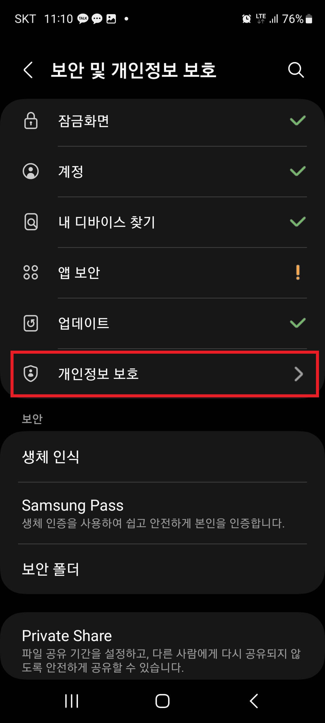 개인정보 보호 설정하기